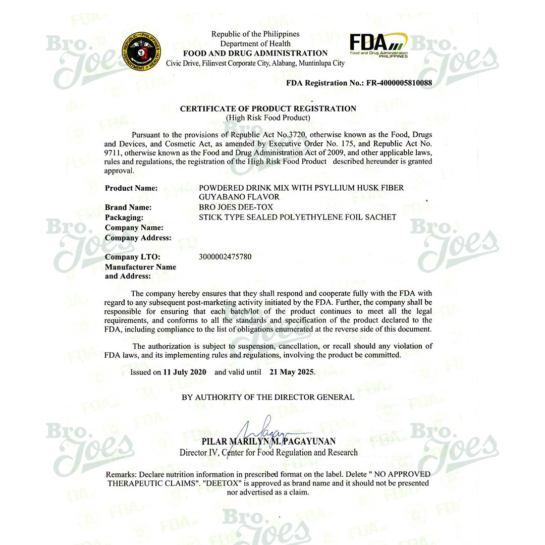 Bro Joe's Dee-Tox Powdered Drink Mix